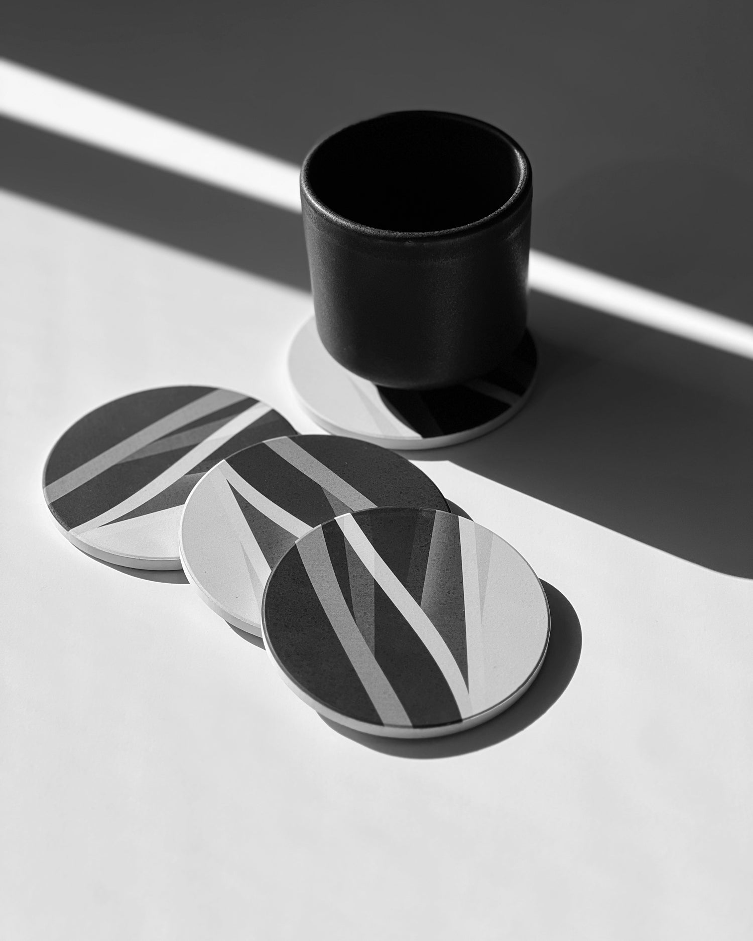 Bring abstract rhythm to the table. The Shades of Grey coaster set transforms everyday rituals into moments of design, balancing geometry, shadow, and form. Durable, sculptural, and made to live beautifully in the spaces you use most.